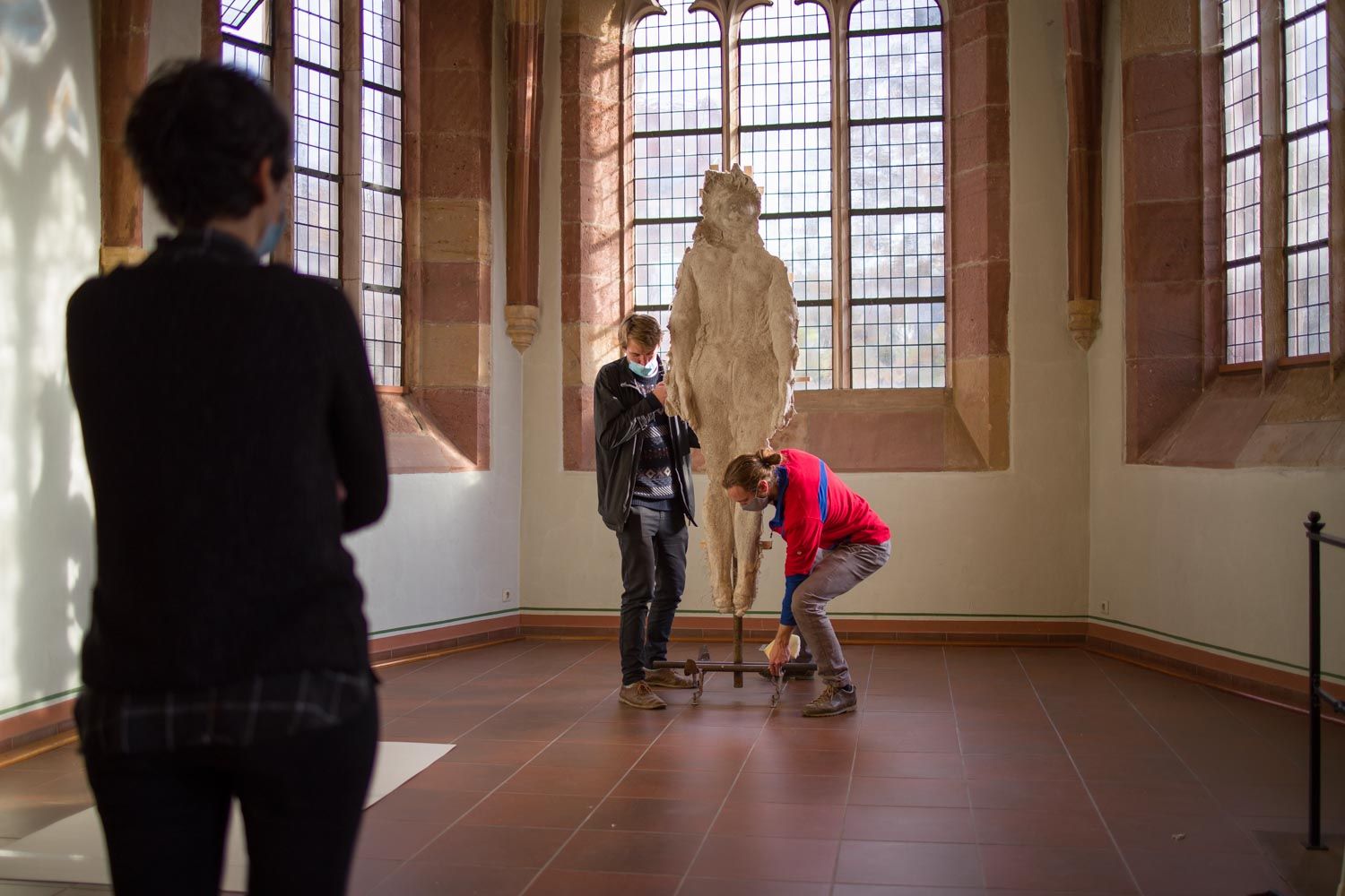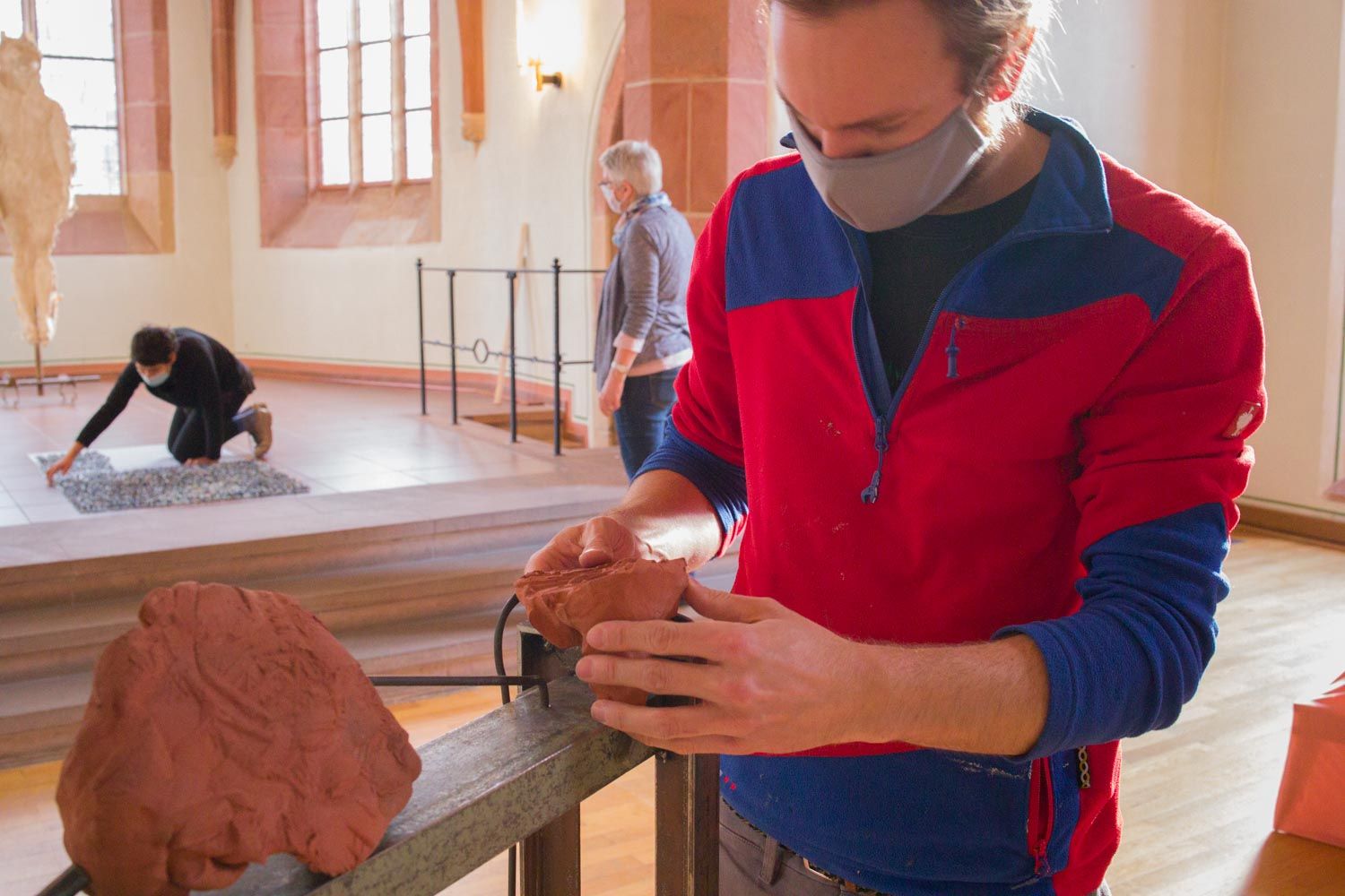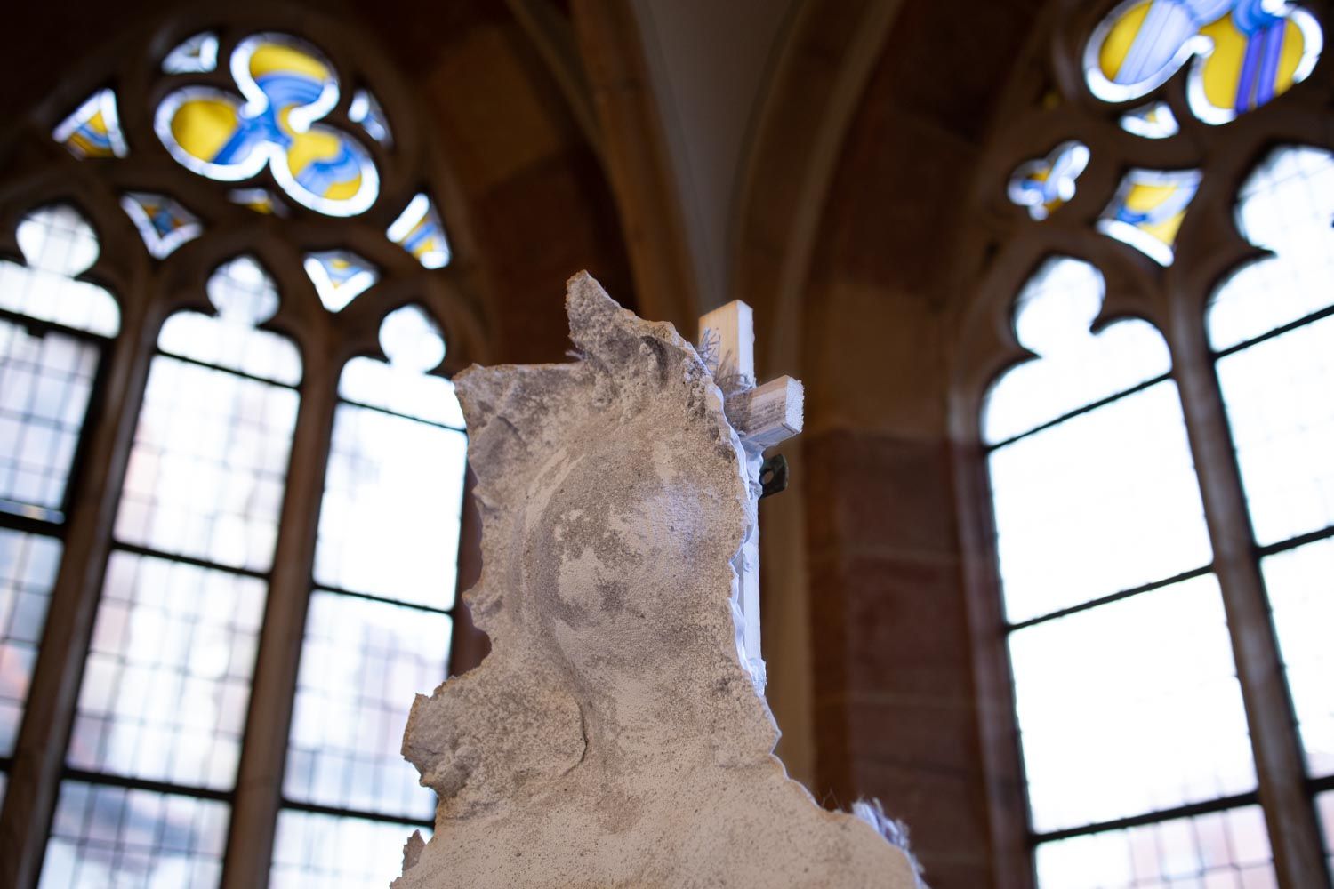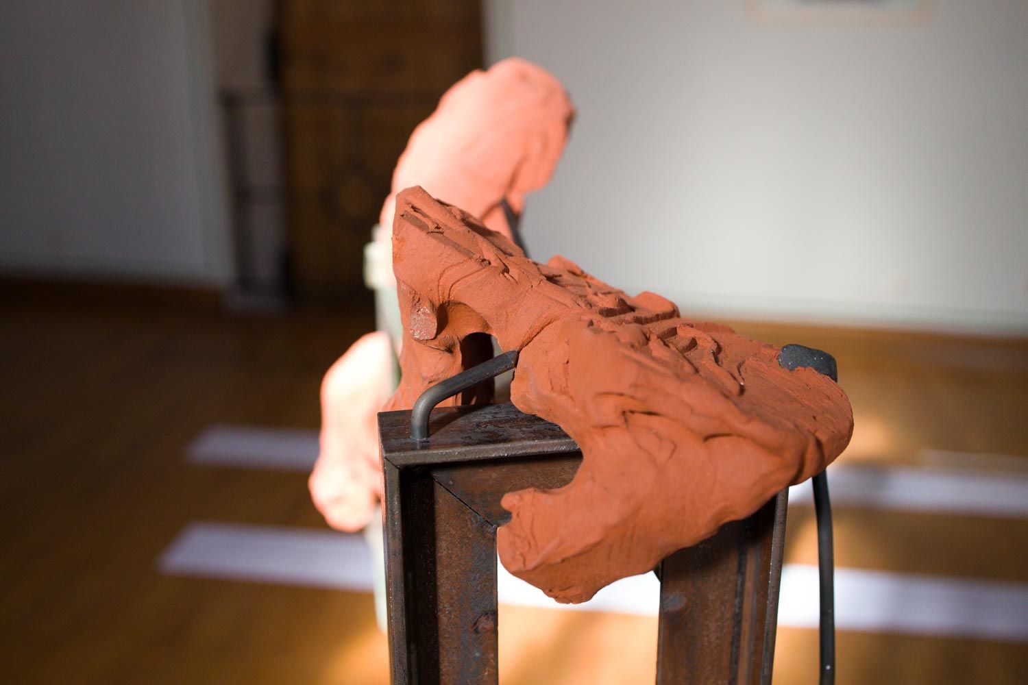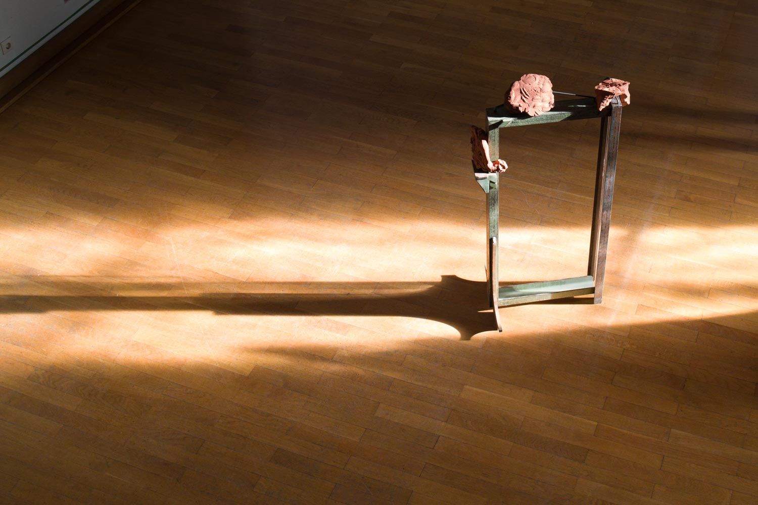 - Selbstbild / 2020 / Gips, Holz, Stahl, Sand, Filz, Lack
