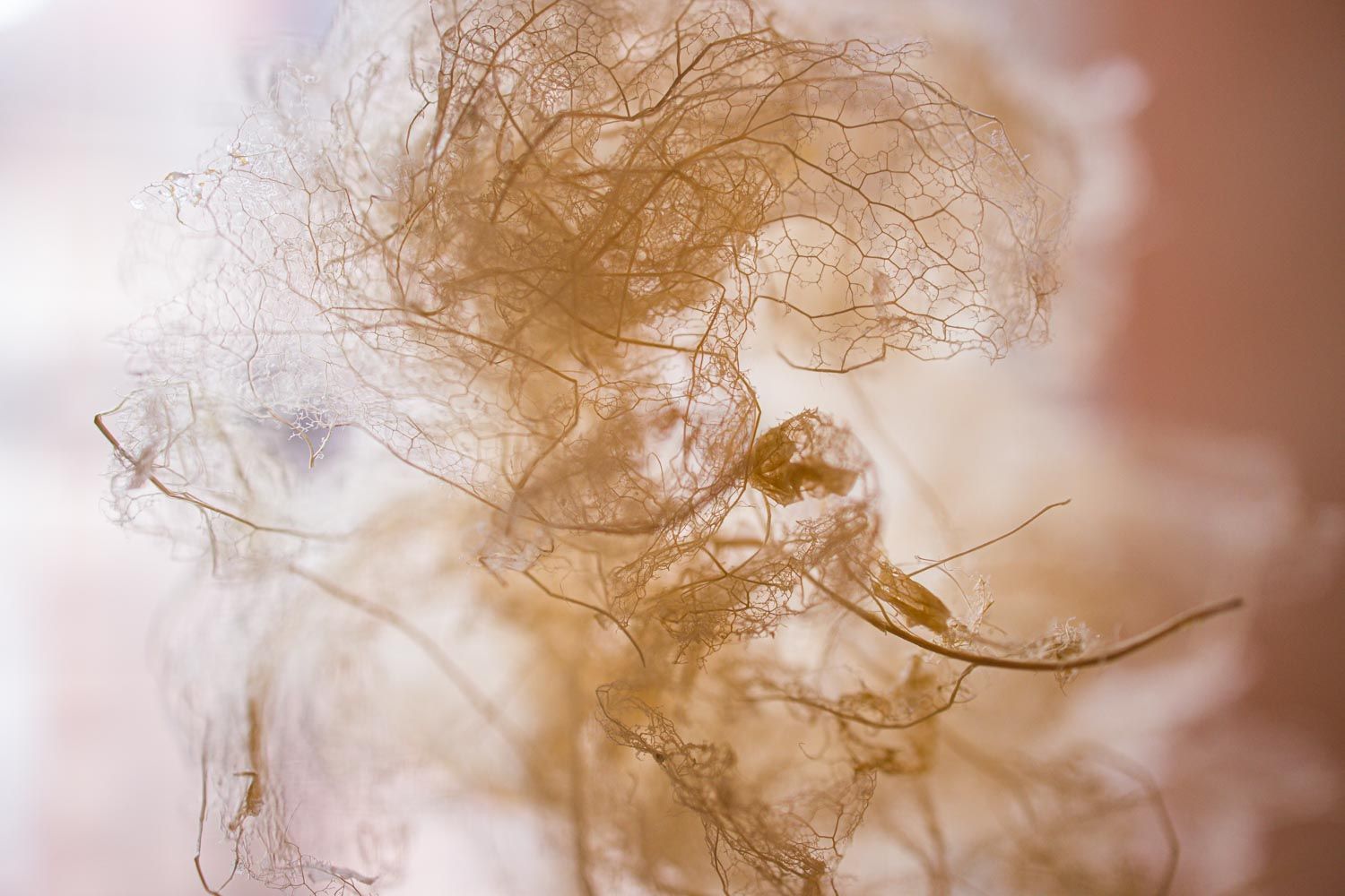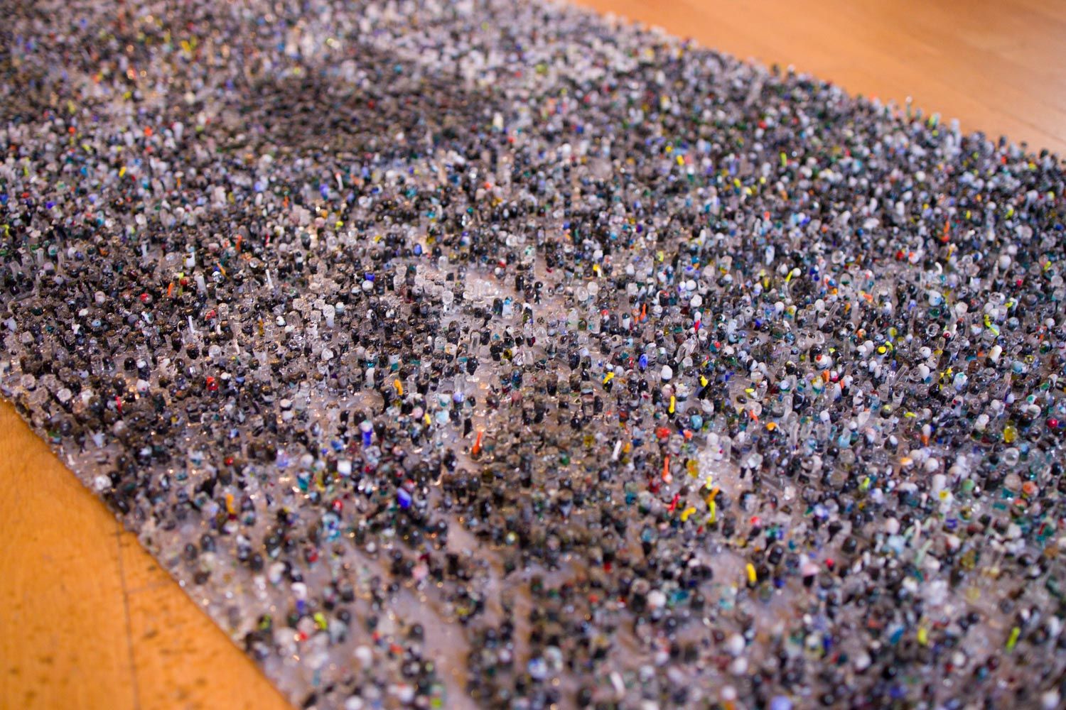 - Momentaufnahme / 2019 / Blechdose ohne Boden, Zahnstocher, Haare