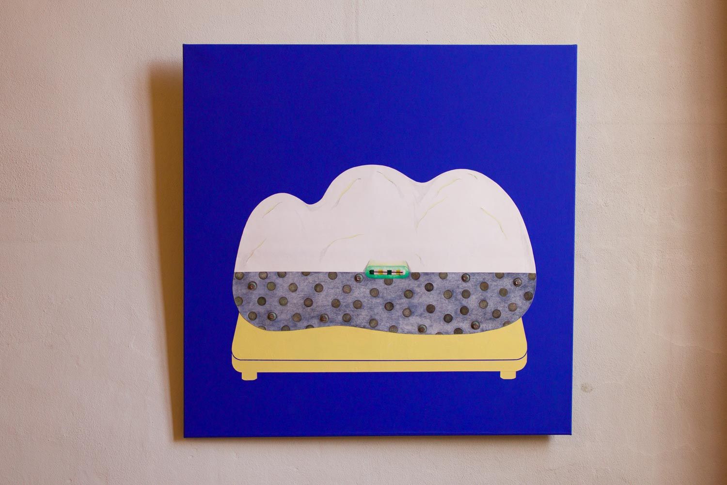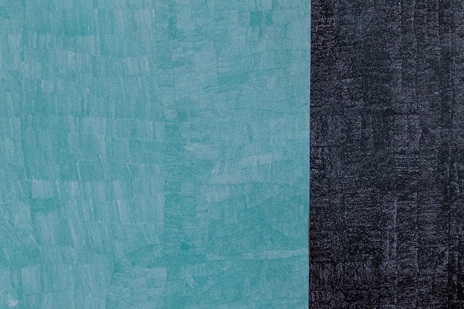 - Mountain-shaped Stone / 2020 / Blei-und Buntstift, Faden, Acrylic, Leinwand