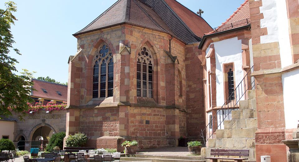 Als schöne geschlossenen Hofanlage mit einem barocken Adelshaus als Mittelpunkt präsentiert sich die Sektkellerei "Schloss Wachenheim AG" als bedeutendes Unternehmen im Zentrum der Stadt. Der neu renovierte Marmorsaal bietet bis zu 400 Personen Platz.